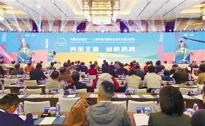 自治區(qū)商務廳在上海舉辦“內(nèi)蒙古自治區(qū)—上海市現(xiàn)代服務業(yè)合作交流洽談會”。內(nèi)蒙古日報社融媒體記者高慧攝