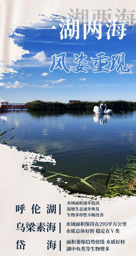 烏梁素海發(fā)生的變化,是內(nèi)蒙古生態(tài)治理的一個縮影。內(nèi)蒙古地處祖國北疆,其生態(tài)狀況如何,不僅關(guān)系全區(qū)各族群眾生存和發(fā)展,而且關(guān)系華北、東北、西北乃至全國生態(tài)安全。多年來,內(nèi)蒙古將筑牢我國北方重要生態(tài)安全屏障,作為必須擔(dān)負起的重大政治責(zé)任、必須始終銘記于心的“國之大者”,久久為功推進治理,“十三五”時期污染防治攻堅戰(zhàn)階段性目標任務(wù)圓滿完成。在水生態(tài)綜合治理方面,過去5年,呼倫湖水域面積逐年提高,濕地生態(tài)逐步恢復(fù),生物多樣性不斷改善;岱海面積萎縮趨勢放緩,水質(zhì)也在好轉(zhuǎn),湖中魚類等生物增多;察汗淖爾治理工作也全面推開。