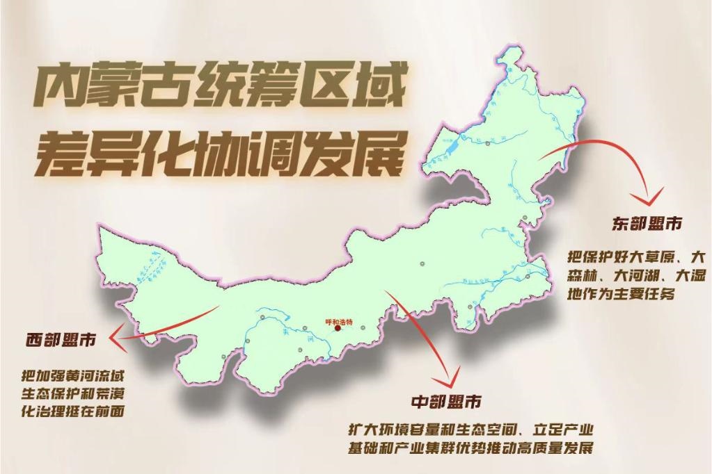 近年,內(nèi)蒙古按照主體功能區(qū)定位統(tǒng)籌區(qū)域差異化協(xié)調(diào)發(fā)展:東部盟市把保護好大草原、大森林、大河湖、大濕地作為主要任務(wù);中部盟市擴大環(huán)境容量和生態(tài)空間、立足產(chǎn)業(yè)基礎(chǔ)和產(chǎn)業(yè)集群優(yōu)勢推動高質(zhì)量發(fā)展;西部盟市把加強黃河流域生態(tài)保護和荒漠化治理挺在前面。