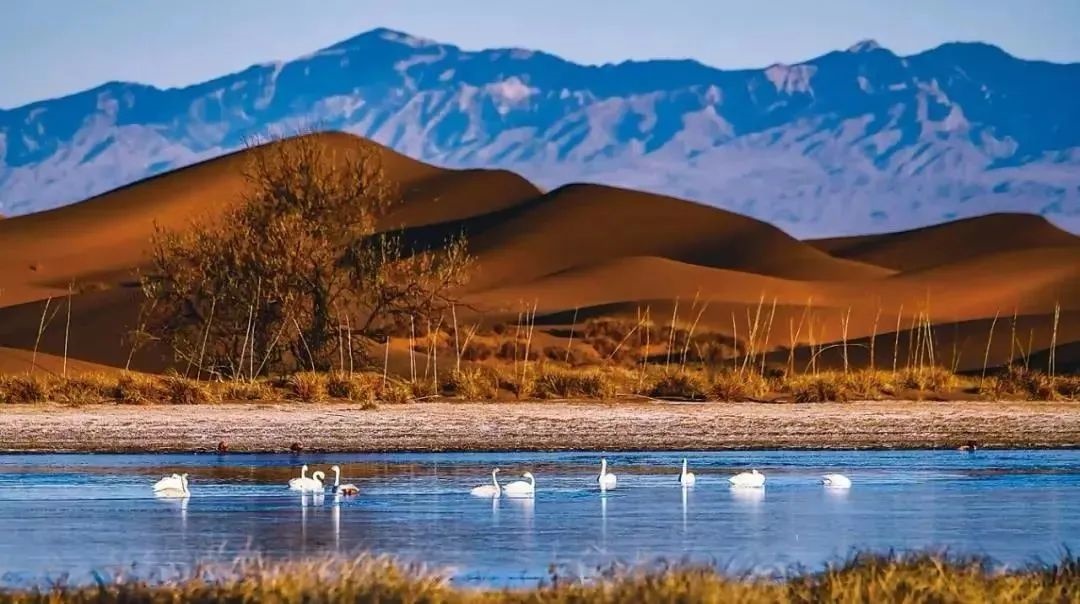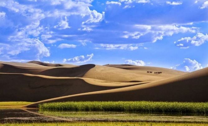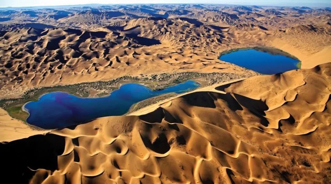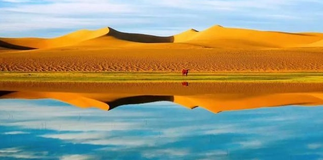 巴丹吉林沙漠年降水量不足40毫米,但是沙漠中的湖泊竟然多達100多個。高聳入云的沙山,神秘莫測的鳴沙,靜謐的湖泊、濕地,構成了巴丹吉林沙漠獨特的迷人景觀,于2005年被《中國國家地理》雜志評為中國最美麗的沙漠,每年吸引了上萬名國內外游客前來觀光。