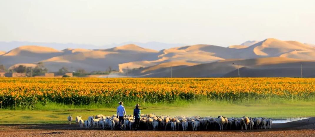 沙海披綠裝,荒漠變綠洲。