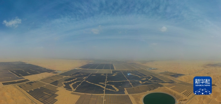 鄂爾多斯市庫(kù)布其沙漠深處,由近20萬(wàn)塊深藍(lán)色光伏板構(gòu)成的巨型駿馬圖令人震撼,不少“拍客”慕名而來(lái)。這處駿馬光伏電站相當(dāng)于180多個(gè)標(biāo)準(zhǔn)足球場(chǎng)大小,板上發(fā)電、板下種植,既利用豐富的太陽(yáng)能資源,又推動(dòng)沙漠生態(tài)治理。