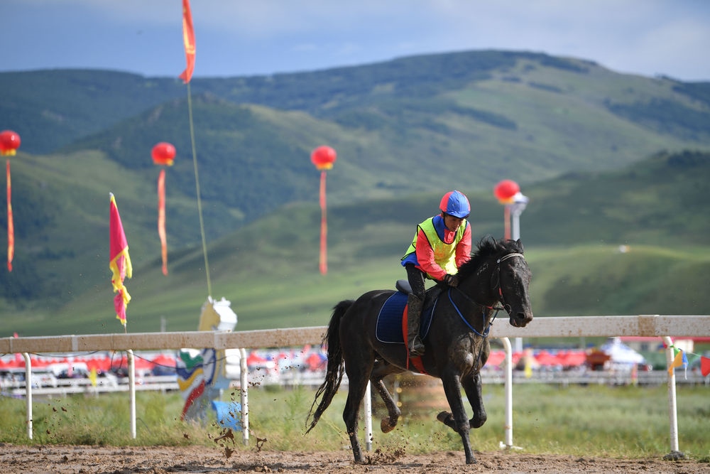 牧民在興安盟那達(dá)慕參加賽馬比賽(2020年8月9日攝)。新華社記者貝赫攝