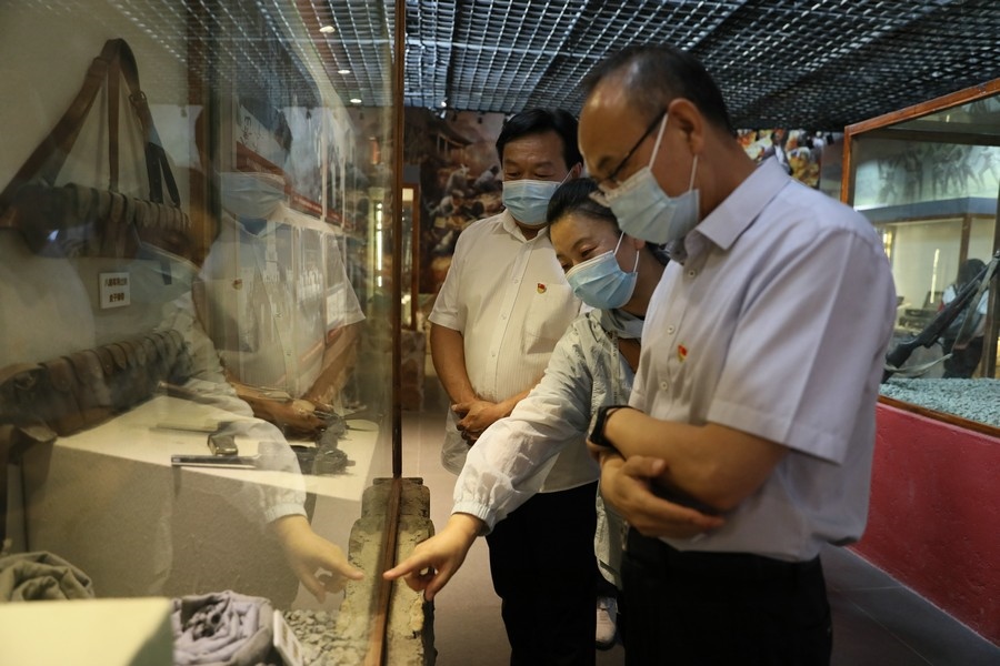 在大青山抗日革命史紀(jì)念館內(nèi),一幅幅真實(shí)的戰(zhàn)斗圖片,一件件珍貴的歷史文物,一幕幕感人的革命場(chǎng)景,生動(dòng)詮釋了革命先烈堅(jiān)如磐石的紅色信仰,將大家?guī)Щ氐侥嵌纹D苦卓絕、浴血榮光的革命歲月,全體黨員干部接受了一次深刻的黨性教育和靈魂洗禮。