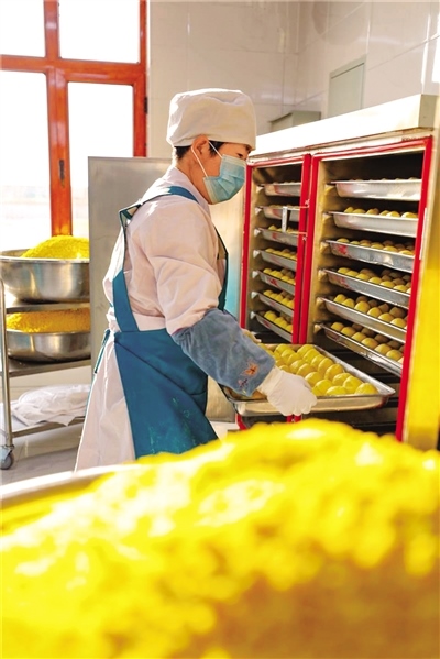 同樣,在該蘇木吉日花嘎查黨支部領(lǐng)辦的吉日花烏蘭香食品廠內(nèi),工人們也正忙著把蒸制好的黏豆包進行冷凍、真空包裝,準(zhǔn)備發(fā)往各地。