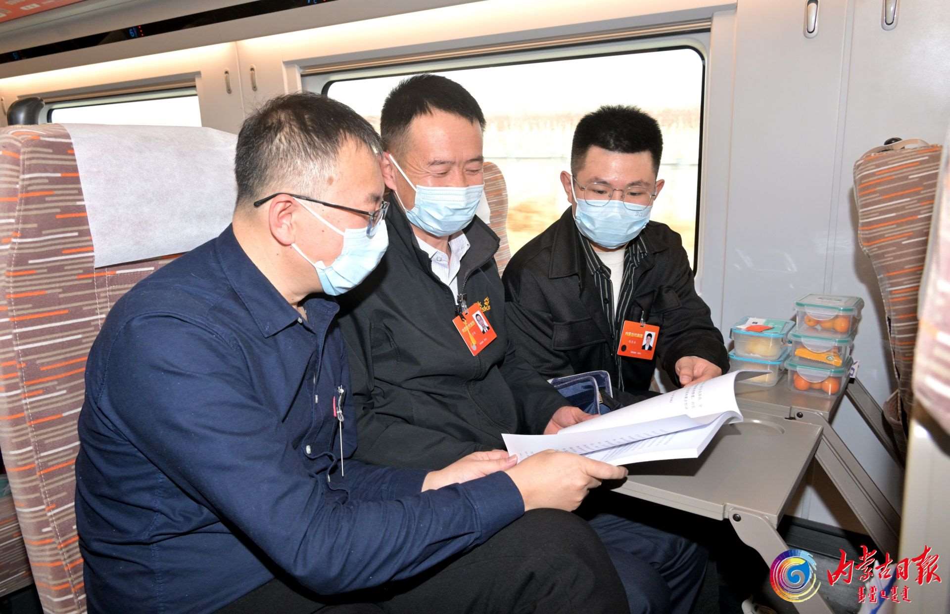 出席十四屆全國(guó)人大一次會(huì)議的內(nèi)蒙古代表團(tuán)代表在赴京列車(chē)上互相交流。內(nèi)蒙古日?qǐng)?bào)?草原全媒記者馬建荃攝