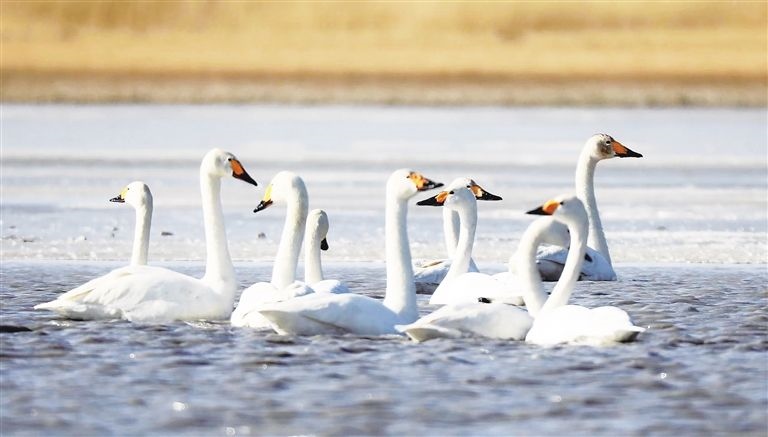 晶晶忍不住感嘆:“我和盈盈每次南飛或北遷,都要在沉湖‘打卡’,這個城市濕地已變成了小天鵝的‘會客廳’。前些年,這里可不好玩,用人類的話說,它‘曾經(jīng)滿目瘡痍,如今萬鳥翔集、水草豐美’?!?/p>