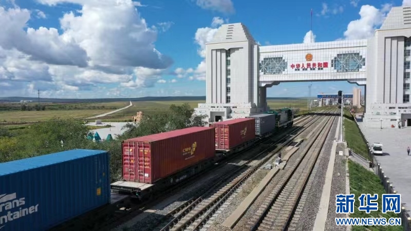 中歐班列駛出滿洲里國門。新華網(wǎng)發(fā) (李新軍 攝)