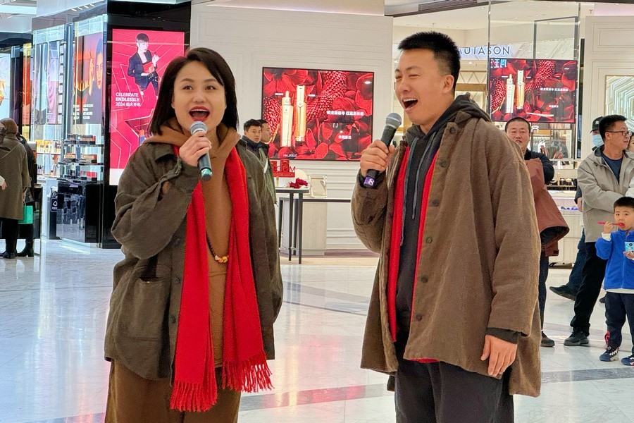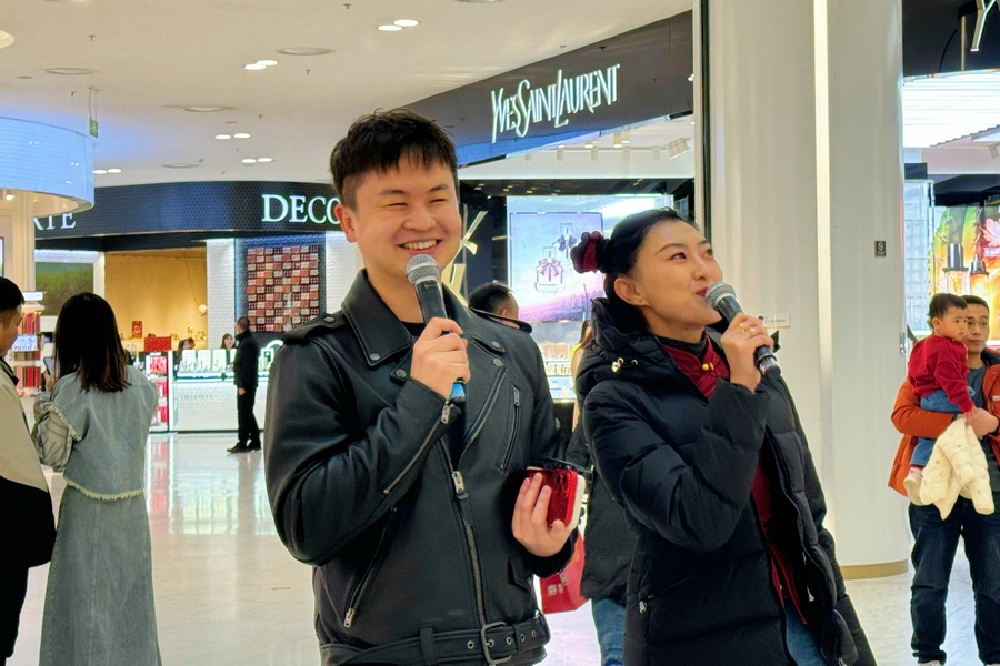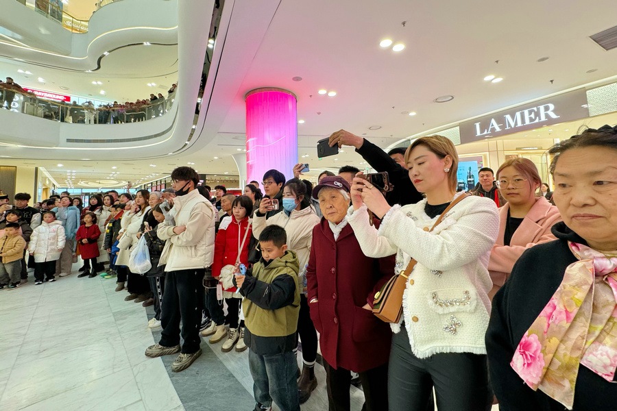 當(dāng)天是甲辰龍年正月初五,商場里闔家出行的市民和外地游客絡(luò)繹不絕,大家興致盎然地圍觀了演出。