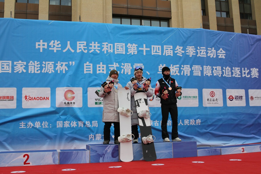 北疆新聞烏蘭察布2月19日電(記者 張楊 王豐)2月19日,第十四屆全國(guó)冬季運(yùn)動(dòng)會(huì)單板滑雪公開(kāi)組男子障礙追逐賽在烏蘭察布涼城滑雪場(chǎng)結(jié)束,吉林隊(duì)選手葉康佳率先沖過(guò)終點(diǎn)線摘得金牌。這是他在“十四冬”上收獲的首枚金牌。內(nèi)蒙古選手李柯新、山西選手張彬分獲亞、季軍。