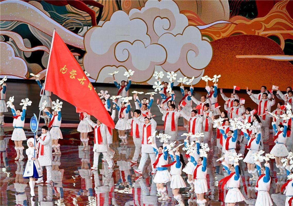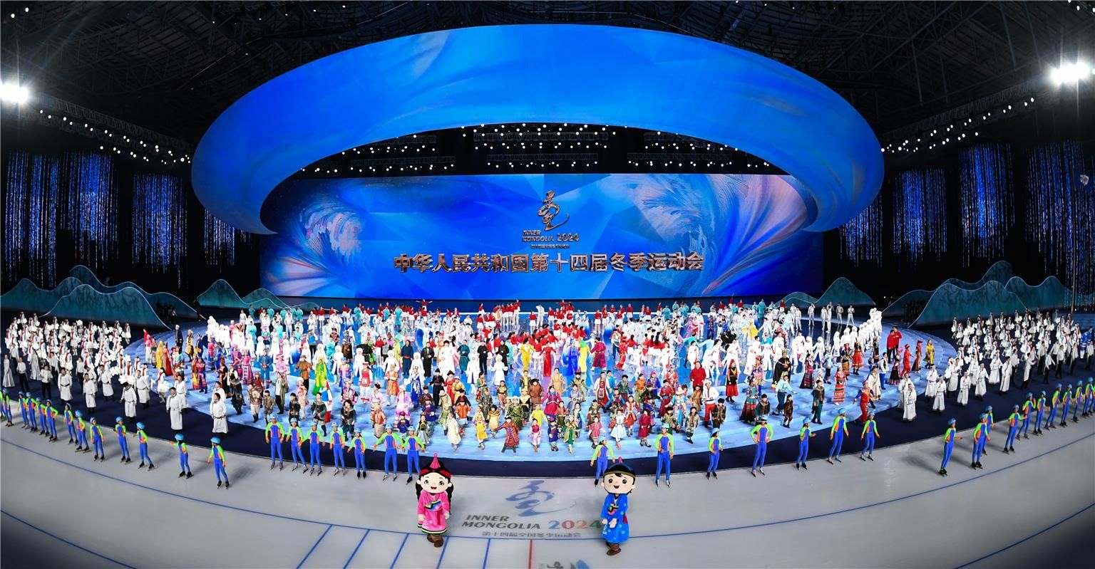 2月17日晚,第十四屆全國冬季運(yùn)動(dòng)會(huì)開幕式在內(nèi)蒙古自治區(qū)冰上運(yùn)動(dòng)訓(xùn)練中心速滑館舉行。開幕式分為開幕儀式、文體展演兩大部分。