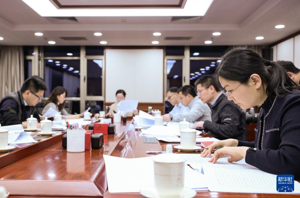 3月6日,財政部工作人員根據(jù)代表的意見建議對預(yù)算報告進(jìn)行對照、研究。新華社記者李賀攝