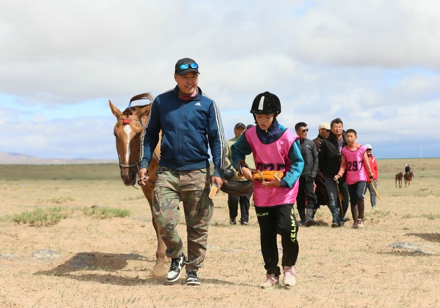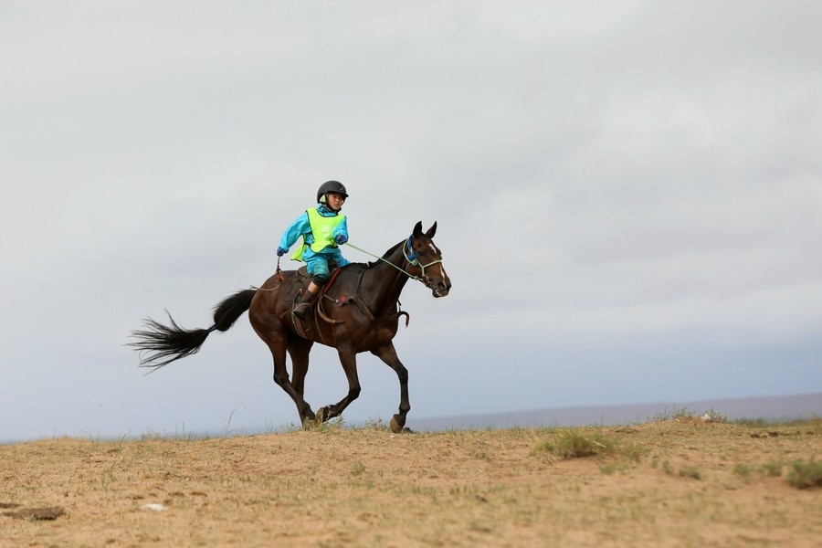7月16日上午,內(nèi)蒙古自治區(qū)第34屆草原那達慕24公里賽馬,在錫林浩特希日塔拉草原舉行。來自蘇尼特右旗的13歲少年安琪爾,騎乘叔叔青格勒家的新6歲馬,在最后百余米沖刺階段,超越對手獲得冠軍。