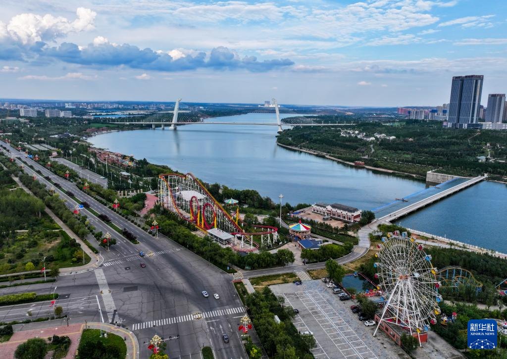 ???這是9月19日拍攝的鄂爾多斯市康巴什區(qū)中軸線(無人機(jī)照片)。