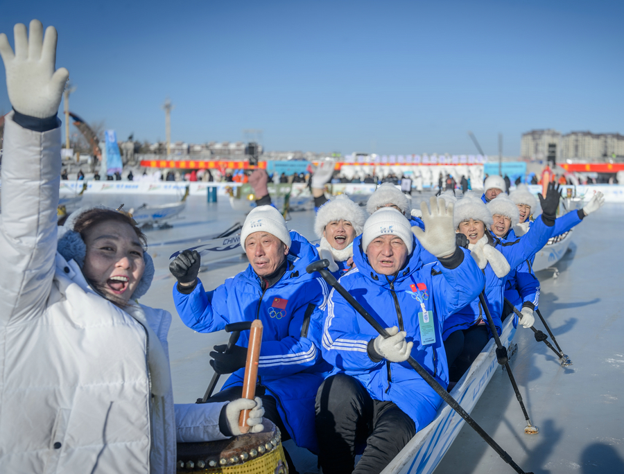冰上龍舟作為傳統龍舟運動的創(chuàng)新變體,將場地移至冰面,船體保留了龍舟的基本構造元素,同時底部裝有冰刀或滑輪以適應冰面滑行。這項運動融合了競技性、團隊性與娛樂性,讓參與者在冰面上體驗風馳電掣的刺激,能夠極大地激發(fā)了人們的冰雪運動熱情。