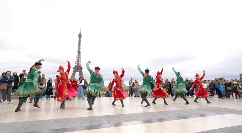 在法國巴黎市的夏約宮廣場、埃菲爾鐵塔、香榭麗舍大街、巴黎圣母院、凱旋門、國際大學(xué)城,比利時布魯塞爾市大廣場、藝術(shù)山等地,阿拉善的烏蘭牧騎演員開啟了一場場融合蒙古族華服走秀與快閃歌舞表演,“阿拉善在哪里?”“這服裝太酷了!”“怎么有萬馬奔騰的感覺!”“想去看一看!”“這沙漠也太壯觀了!”快閃路演吸引了法國、比利時以及來自世界各地的游客駐足觀看,喝彩不斷,沉醉其中。