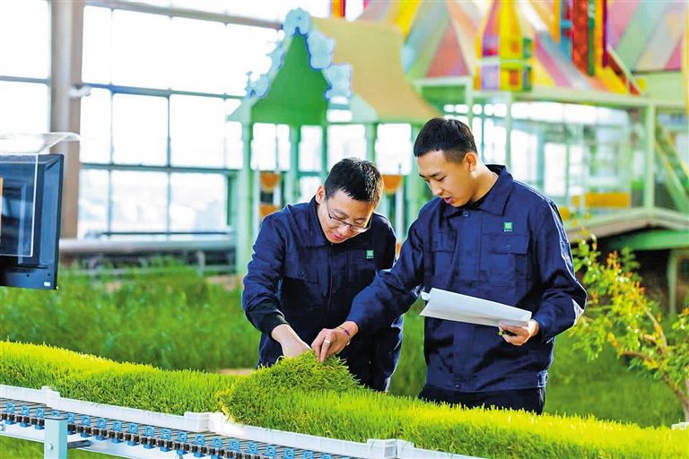 國家草業(yè)技術(shù)創(chuàng)新中心(籌)科研人員查看飼草實(shí)驗(yàn)情況。