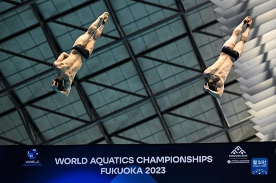 當(dāng)日,在2023年福岡世界游泳錦標(biāo)賽跳水男子雙人3米板決賽中,中國(guó)組合龍道一/王宗源以456.33分的總成績(jī)奪得冠軍。