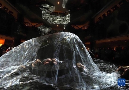當(dāng)日,上海博物館攜手杭州良渚遺址管理區(qū)管理委員會(huì)推出“研色·良渚之夜”沉浸式綜合藝術(shù)秀演出。作為“何以中國(guó)”系列大展的第二展“實(shí)證中國(guó):崧澤·良渚文明考古特展”的活動(dòng)之一,“研色·良渚之夜”采用現(xiàn)代舞、服裝秀、音樂(lè)秀和數(shù)字投影燈光秀等多種舞臺(tái)藝術(shù)形式,結(jié)合良渚核心色彩和文化元素,讓觀眾沉浸式體驗(yàn)良渚穿越五千年的美學(xué)文化。新華社記者 任瓏 攝