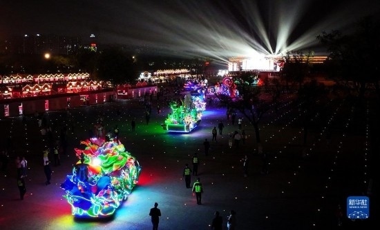 唐大明宮是盛唐時期享有盛名的宮殿群,有著“千宮之宮”的美譽。國慶期間,古風(fēng)演藝、華服大秀、曲藝匯演、彩車巡游等一系列活動在大明宮國家遺址公園持續(xù)上演。夜幕之下,盛唐文化與現(xiàn)代時尚在此相映生輝,吸引市民游客前來參觀打卡。新華社記者 劉瀟 攝