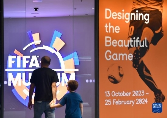 10月12日,在瑞士蘇黎世,人們參觀國際足聯博物館。新華社記者 連漪 攝