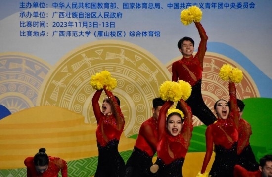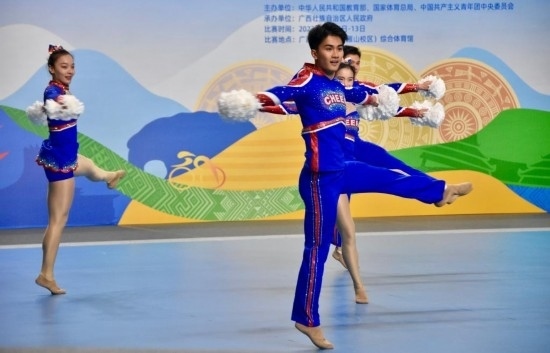 學(xué)青會校園組啦啦操比賽場景。新華社記者 鄭昕 攝