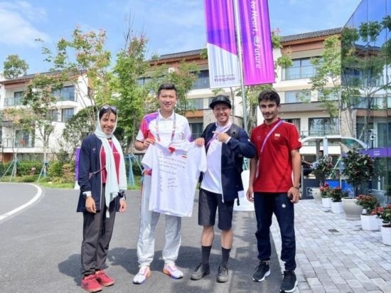 在比賽期間,王逢每日工作近20小時(shí),協(xié)調(diào)團(tuán)隊(duì)處理解決證件通行、醫(yī)療服務(wù)、競賽保障等近150項(xiàng)需求。他與團(tuán)隊(duì)高效、優(yōu)質(zhì)溝通協(xié)調(diào)現(xiàn)場工作,為多個(gè)國家(地區(qū))參賽人員帶來了安心。在亞奧理事會代理主席辛格先生參觀了淳安亞運(yùn)分村時(shí),王逢以專業(yè)的語言和溝通能力主動擔(dān)任辛格先生的雙語翻譯人員,獲得了辛格先生的高度肯定。