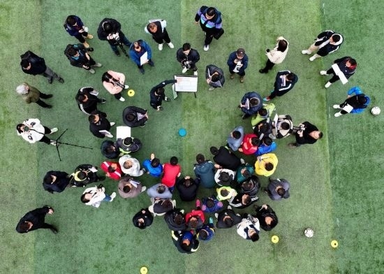 12月12日,學員參加“學轉英超”基層足球教練培訓項目(無人機照片)。新華社記者 劉續(xù) 攝