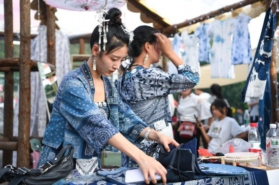 榕江縣古州文化旅游投資開發(fā)(集團)有限責任公司總經(jīng)理孫國秀說,“村超”的火爆帶火了相關產(chǎn)業(yè)?!皟H全縣開發(fā)的藍染‘村超’文創(chuàng)產(chǎn)品就有200多款,包括T恤、布袋、球隊隊標等?!?/p>