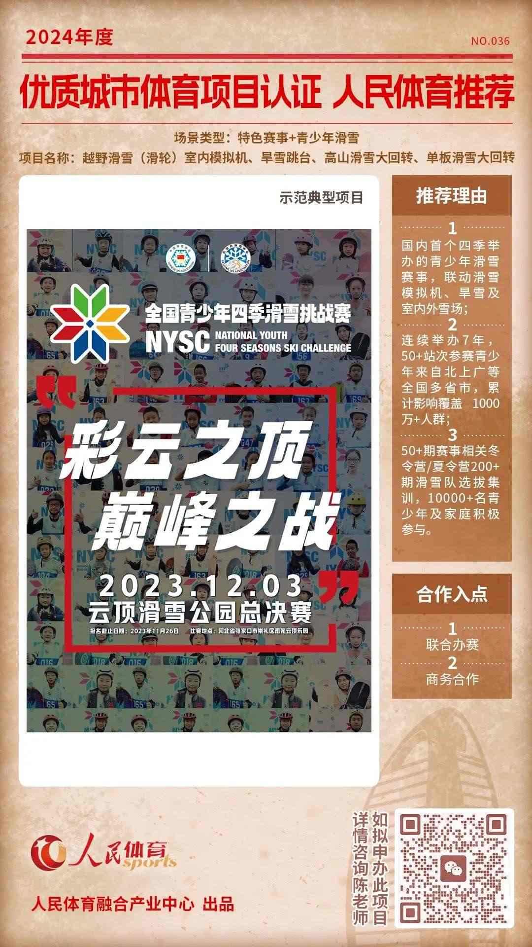 人民體育發(fā)起的“優(yōu)質(zhì)體育賽事及活動認(rèn)證推薦計劃”,于2024年01月推出第四批共9個推薦項目,本期推薦首次推出單個項目深度介紹欄目。同時,第五期推薦項目征集開啟中。