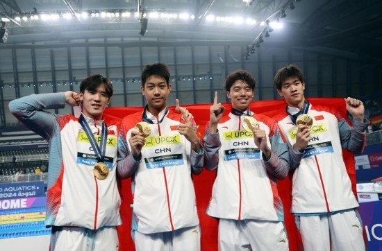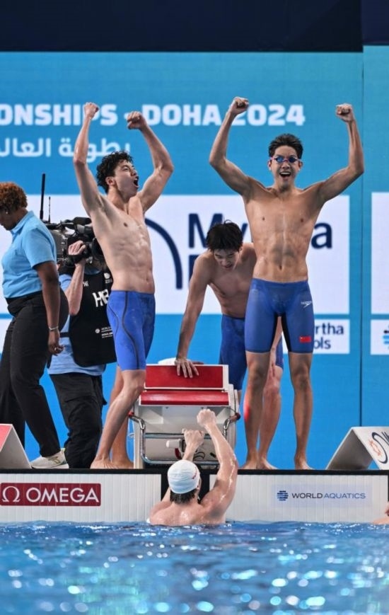 11日,中國(guó)農(nóng)歷甲辰龍年大年初二,多哈世界游泳錦標(biāo)賽游泳項(xiàng)目第一個(gè)比賽日,潘展樂(lè)和隊(duì)友季新杰、張展碩、王浩宇在男子4×100米自由泳接力決賽中以3分11秒08贏得金牌,為中國(guó)男子游泳創(chuàng)造歷史!中國(guó)游泳此前還從未獲得過(guò)世錦賽或者奧運(yùn)會(huì)的男子接力冠軍。