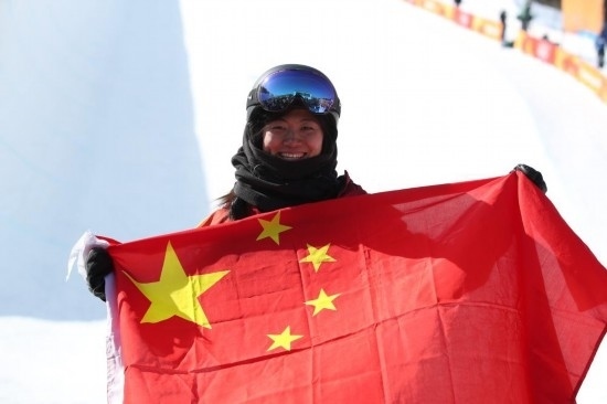 2018年2月13日,中國選手劉佳宇在比賽后慶祝。當(dāng)日,在2018年平昌冬奧會單板滑雪女子U型場地技巧決賽中,劉佳宇獲得銀牌。新華社記者費茂華攝