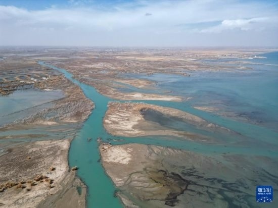 這是3月24日拍攝的新疆博斯騰湖景區(qū)(無人機照片)。
