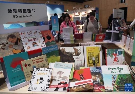 這是4月12日在法國巴黎臨時大皇宮舉行的2024巴黎書展上拍攝的中國圖書。