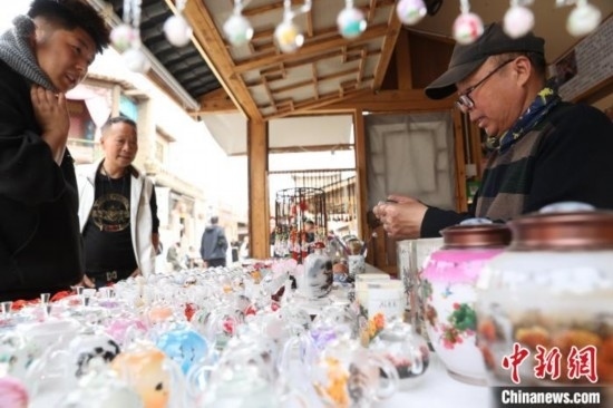 市民觀看艾福多創(chuàng)作內(nèi)畫鼻煙壺。中新網(wǎng)記者 于晶 攝