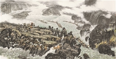 中國畫《李冰父子與都江堰》,作者梁時民、李錛、張躍進。