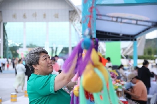 施滿義在攤位上向顧客介紹著刺繡、荷包、胸針等商品。作為自治區(qū)級(jí)非遺傳承人,施滿義非常明白客流量和曝光量對(duì)于非遺文創(chuàng)產(chǎn)品的重要性?!斑@里客流量大,像這個(gè)胸針,今天下午剛擺上沒多久已經(jīng)賣出180多個(gè)了?!?/p>