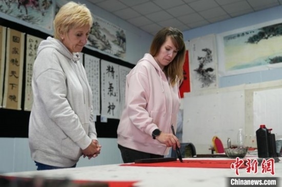 圖為外國友人進行書法創(chuàng)作。韓慧峰 攝