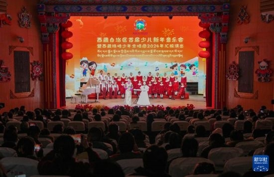 12月28日拍攝的西藏首屆少兒新年音樂會暨西藏珠峰少年合唱團(tuán)2024年匯報(bào)演出現(xiàn)場。