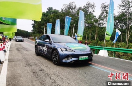 12月29日,環(huán)熱帶雨林國(guó)家公園旅游公路項(xiàng)目在海南瓊中黎族苗族自治縣黎母山鎮(zhèn)舉行通車儀式。第一批新能源車隊(duì)集結(jié)出發(fā)。中新網(wǎng)記者 張茜翼 攝