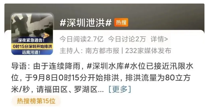 5日-9日,臺(tái)風(fēng)“海葵”先后兩次登陸福建、廣東。受其影響,南方多地出現(xiàn)特大暴雨,福建省、廣東省氣象臺(tái)多次發(fā)布“暴雨預(yù)警一級(jí)”。福州、廈門、漳州、深圳、廣州、佛山等城市內(nèi)澇嚴(yán)重,部分城市雨水齊腰,短時(shí)間強(qiáng)降雨超過100毫米,深圳降雨量更是打破1953年以來的降雨極值,地鐵灌水,深圳泄洪多次登上各大平臺(tái)的熱搜第一。