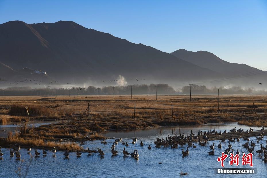 12月20日,西藏自治區(qū)拉薩市林周縣境內(nèi)的冬日風(fēng)光。嚴(yán)冬時(shí)節(jié),拉薩河谷沿線的草甸、山巒、候鳥、寺廟構(gòu)成一道獨(dú)特的風(fēng)景線。 中新社記者 貢嘎來松 攝