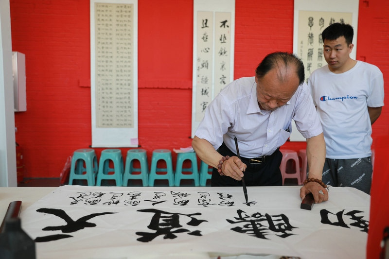活動(dòng)現(xiàn)場(chǎng),書畫家們鋪開宣紙,揮灑愛心情懷。30余名書畫家和愛心人士在活動(dòng)現(xiàn)場(chǎng)揮毫潑墨、內(nèi)蘊(yùn)文質(zhì)精華,外彰形制逸美,以古典文詞展示"尚善"情操和"望賢"之心。"止于至善"、"家和業(yè)興,寧?kù)o致遠(yuǎn)"、"構(gòu)建和諧社會(huì) 倡導(dǎo)助殘風(fēng)尚"……一幅幅充滿著關(guān)愛和正能量的藝術(shù)作品陸續(xù)被創(chuàng)作完成。