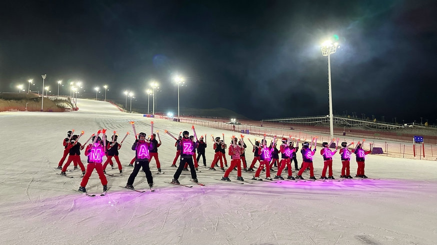 岱海國際滑雪場地處臥佛山北坡,位于北緯40°—42°之間,這里最高海拔2100米,雪道落差500米,雪道面積400000余平方米,雪道總長度14000余米,擁有國際標準越野賽道和單板標準U型槽以及“貓?zhí)被┑溃∕ogul Slope)和“波浪道”等比賽場地。(圖源/烏蘭察布文聯(lián))