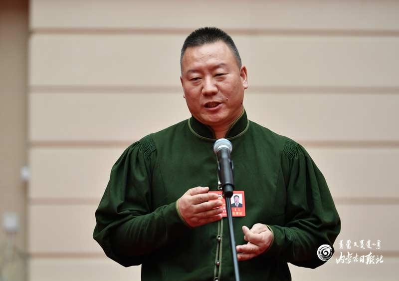 自治區(qū)政協(xié)委員郭萬(wàn)富回答記者提問(wèn)。內(nèi)蒙古日?qǐng)?bào)記者 馬建荃攝