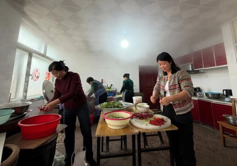 吃殺豬菜一向講求男女分工,家中的男子負責(zé)抓豬屠宰,女性們則負責(zé)后續(xù)的備菜烹煮工作。男人們穿上厚實的棉襖,呵著白氣走向豬圈,用早已準備好的繩索,麻利地將豬的四肢捆扎結(jié)實。隨后,幾人合力將豬抬到宰豬的車上,王國春深吸一口氣,拿起殺豬刀,對準豬的脖頸,動作干脆利落。鮮紅的豬血順著事先準備好的大盆緩緩流淌,不一會兒就接了滿滿一盆。殺完豬,男人們顧不上休息,就趕忙用滾燙的開水給豬褪毛,鐵刮子在豬身上來回刮擦,發(fā)出“唰唰”的聲響,不一會兒,原本黑乎乎的豬就變得白白凈凈。緊接著,他們立刻將豬開膛破肚,把內(nèi)臟分門別類地整理好,豬頭、豬蹄也被仔細地清洗干凈,準備著后續(xù)的處理?! ?/p>