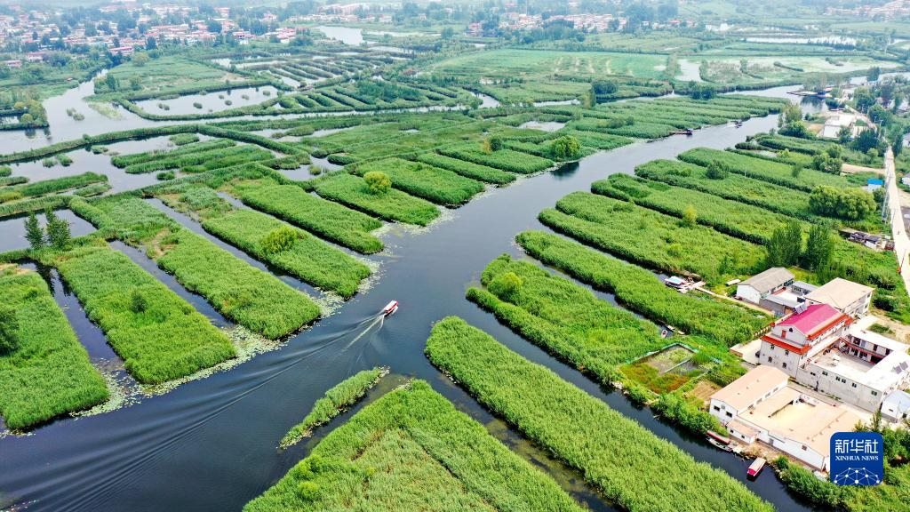 這是白洋淀風(fēng)光(2021年8月14日攝,無(wú)人機(jī)照片)。
