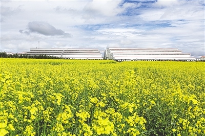 內(nèi)蒙古新巴爾虎右旗烏努格吐山銅鉬礦尾礦庫油菜花田?! ?/p>