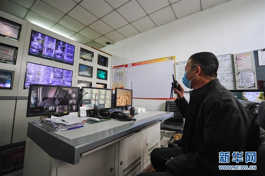 4月10日,在呼和浩特市賽罕區(qū)博曼酒店集中隔離醫(yī)學觀察點,工作人員查看酒店監(jiān)控。 -