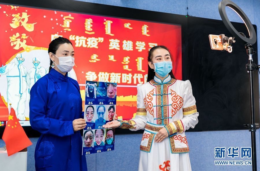 當(dāng)日,內(nèi)蒙古呼和浩特市玉泉區(qū)民族實驗小學(xué)開展“向抗疫英雄學(xué)習(xí),爭做新時代的英雄”空中主題班會活動,通過講述抗疫英雄們馳援武漢的感人瞬間和昂揚風(fēng)貌,引導(dǎo)同學(xué)們感悟英雄品格和榜樣的力量,激發(fā)愛國熱情,爭做新時代的小英雄。新華網(wǎng) 發(fā)(丁根厚攝)